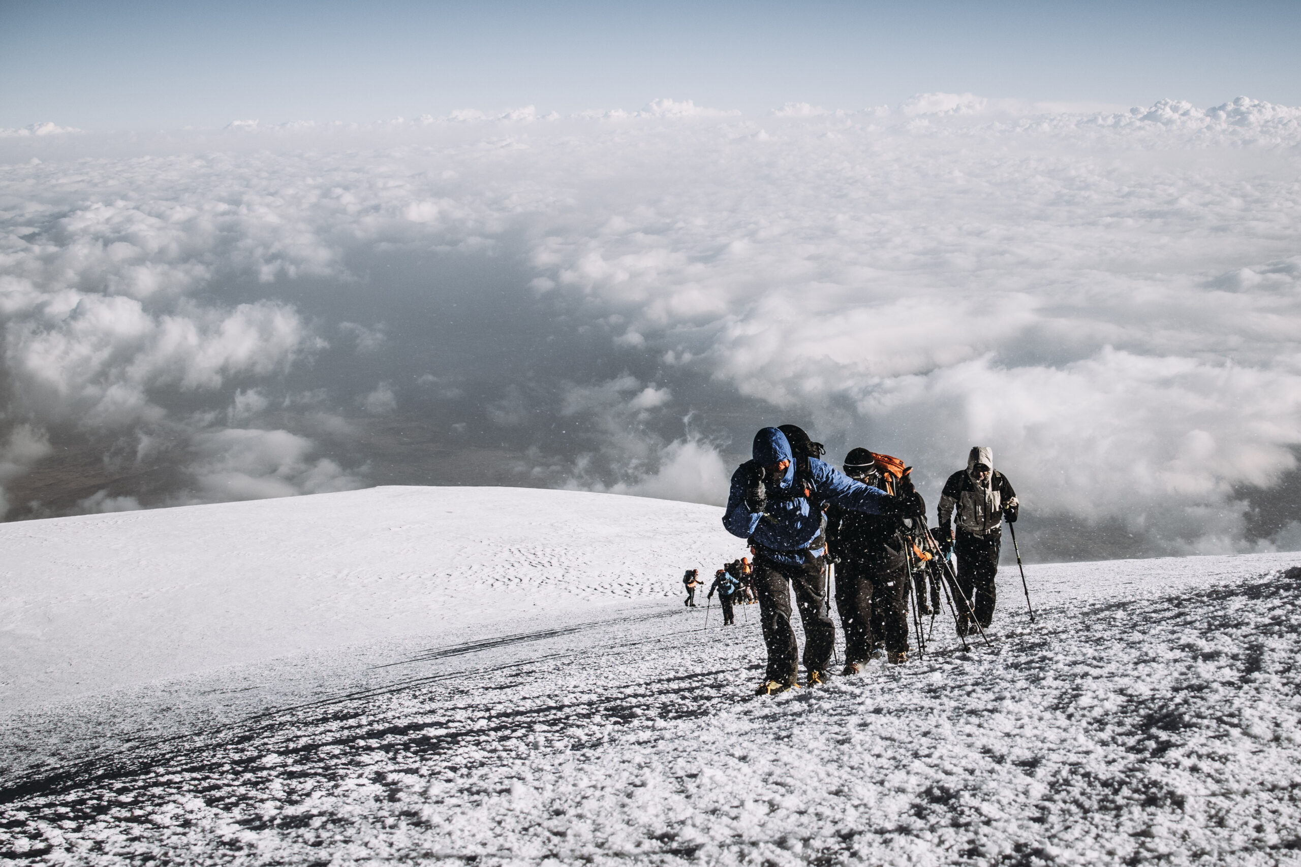 De wind rukt nog steeds aan mijn tentje als net na middernacht mijn wekker gaat. De kou bijt in mijn wangen als we ons klaarmaken voor onze toppoging en mijn vingers weigeren dienst als ik loop te klungelen met mijn schoenveters. Hoofdlampjes worden aangeklikt en al snel beginnen we met klimmen. De komende uren is onze hele wereld gecomprimeerd tot dat kleine plasje licht. Het enige wat telt onze ademhaling, onze voetstappen, en deze donkere reus die ons eigenhandig naar beneden lijkt te willen blazen. Urenlang navigeren we door zwarte rotspartijen, onder een deken van sterren die net zo hard fonkelt als de rijp onder onze voeten. Alles lijkt te glinsteren in deze koude nacht. De hemel, de berg en de ogen van deze kleine groep Nederlanders die probeert hem te bedwingen.