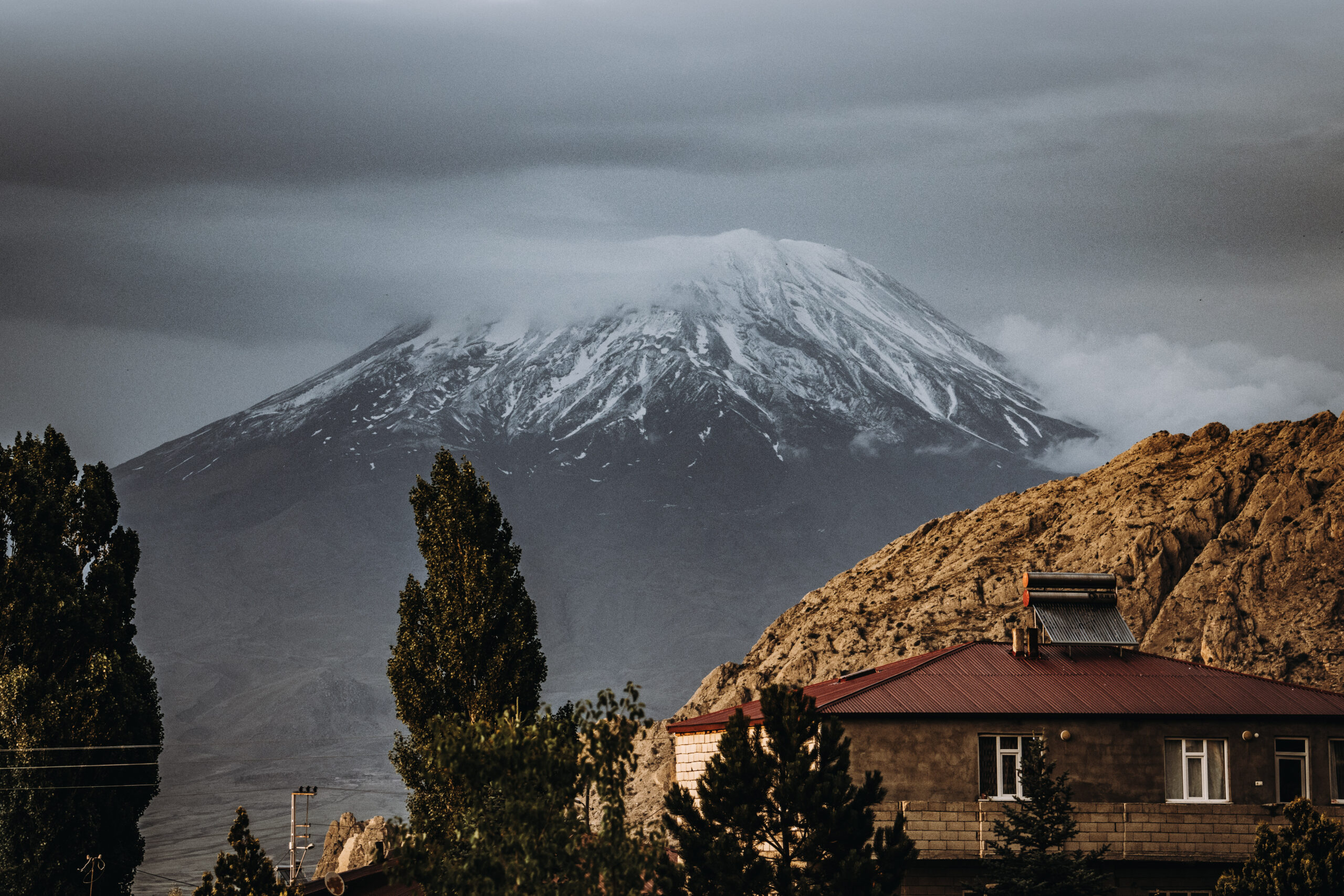 Dan doemt de Ararat plotseling op aan de horizon. Groot en donker, met zwarte flanken en een verijsde top die zich in grote opbollende wolken hult. Zijn aanblik jaagt een collectieve rilling door de bus en er valt een opgewonden stilte. Daar gaan we naar boven, nu wordt het echt!