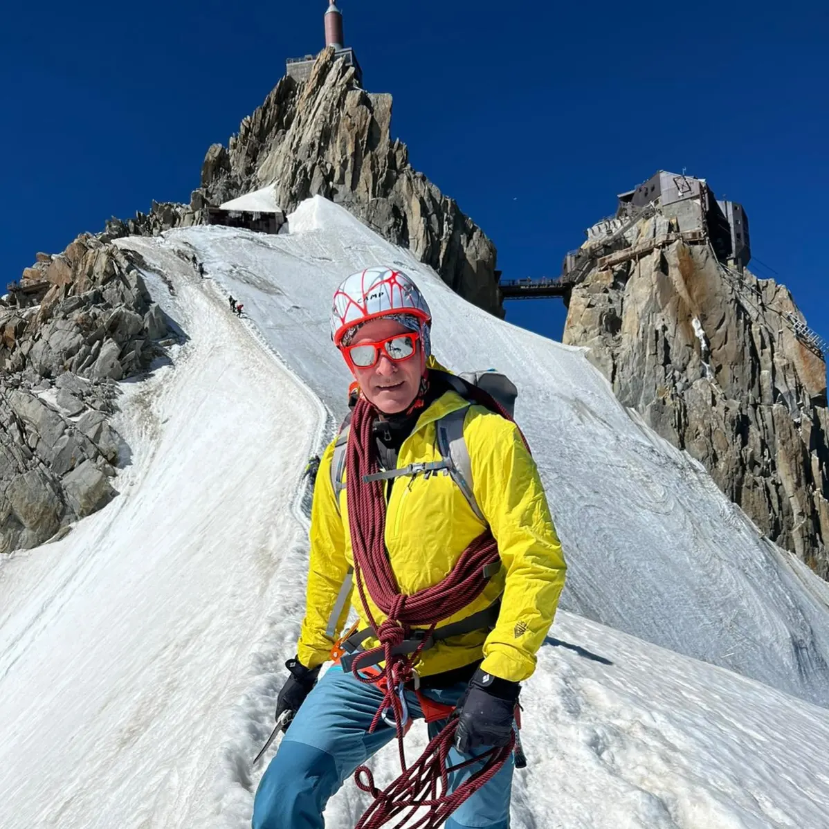 Gidsen is het resultaat van jaren rondtrekken en klimmen in de bergen. Als kind las ik alle klassieke boeken, en mijn eerste doel was de bergen uit die verhalen bezoeken: Pyreneeën, Alpen, Himalaya, Canada. Jarenlang ontdekte ik het alpinisme zelf, tot ik begon te denken aan het begeleiden van anderen, een natuurlijke stap voor wie gepassioneerd is. In 2006 startte ik mijn gidsopleiding, maar na een klimongeluk moest ik stoppen. Tien jaar later zei mijn vrouw: “Ga en maak het af, dit is jouw leven.” En zo werd mijn gidsdiploma werkelijkheid, op mijn 52e, na een leven dat al in dienst stond van de bergen.