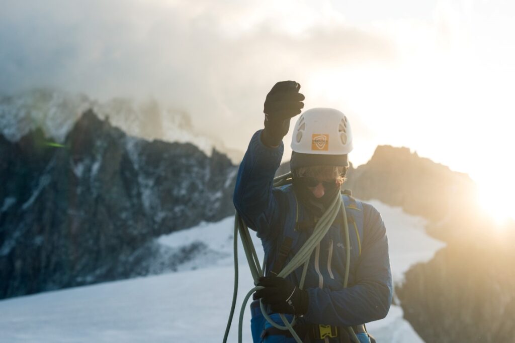 En dat is misschien wel het mooiste aan alpinisme: het moment dat alles eenvoudiger wordt. Je loopt in een vast ritme, adem en stappen vallen samen, de omgeving wordt stil. Je hoeft nergens meer aan te denken, alleen nog vooruit te kijken. In die eenvoud zit een rust en een verbinding met je klimmaten die je nergens anders vindt.