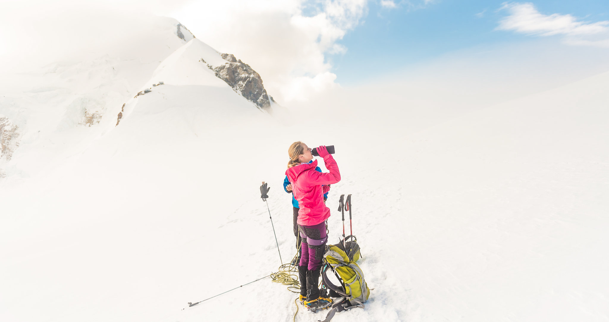Doorgaans wordt de top beklommen vanaf de Refuge du Tête Rousse (3165m). Dat betekent dat je nog ruim 1600 meter moet klimmen tot de top. Dat is lang. Bovendien slaap je op de hutten waarschijnlijk niet zo lekker als in je eigen bed, dus reken erop dat je niet honderd procent uitgerust bent. Combineer dit met een stuk klauteren, een ogenschijnlijk oneindige klim door de sneeuw, én op hoogte en je begrijpt al waarom een toppoging naar de Mont Blanc een uitdaging is om serieus te nemen!