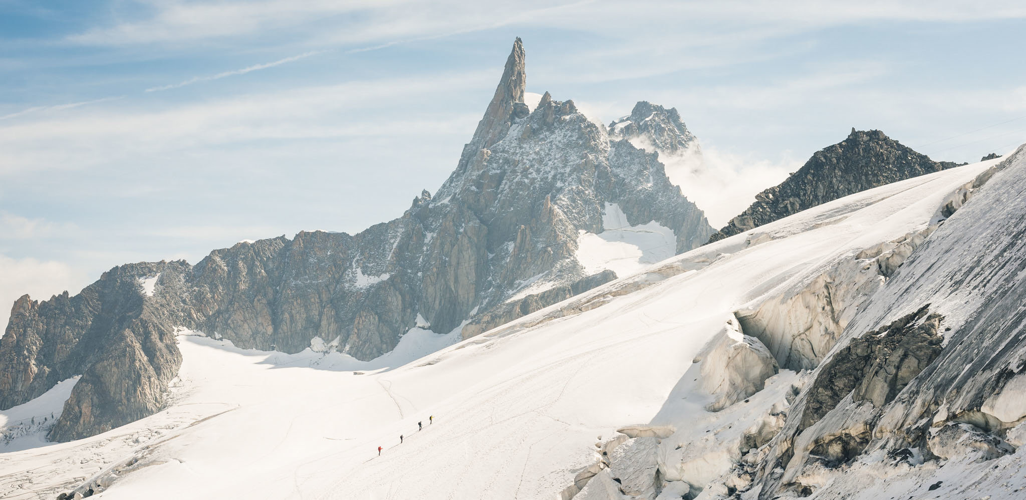 Vandaag komt alles wat je geleerd hebt samen. Om plusminus 5 uur 's ochtends vertrekken we in het donker vanaf de hut. Het eerste stuk voert langs morenen en door blokkenterrein. Na ongeveer 2 uur bind je je stijgijzers onder en start de tocht over de spletenrijke gletsjer. Achter je zie je de Mont Blanc rood opgloeien bij de opkomende zon. Wellicht je volgende doel..? Het laatste stuk naar de top gaat over gemengd terrein met rots en sneeuw, met een paar spannende pasjes. Via dit laatste rotsgraatje bereik je het Madonnabeeldje op de top! De beloning is een prachtig uitzicht over Alpenboog, van de Barre des Ecrins tot de Matterhorn. Na een flinke afdaling rijd je terug naar Chamonix waar je bij een heerlijke maaltijd in het chalet napraat over een mooie week in de bergen.
