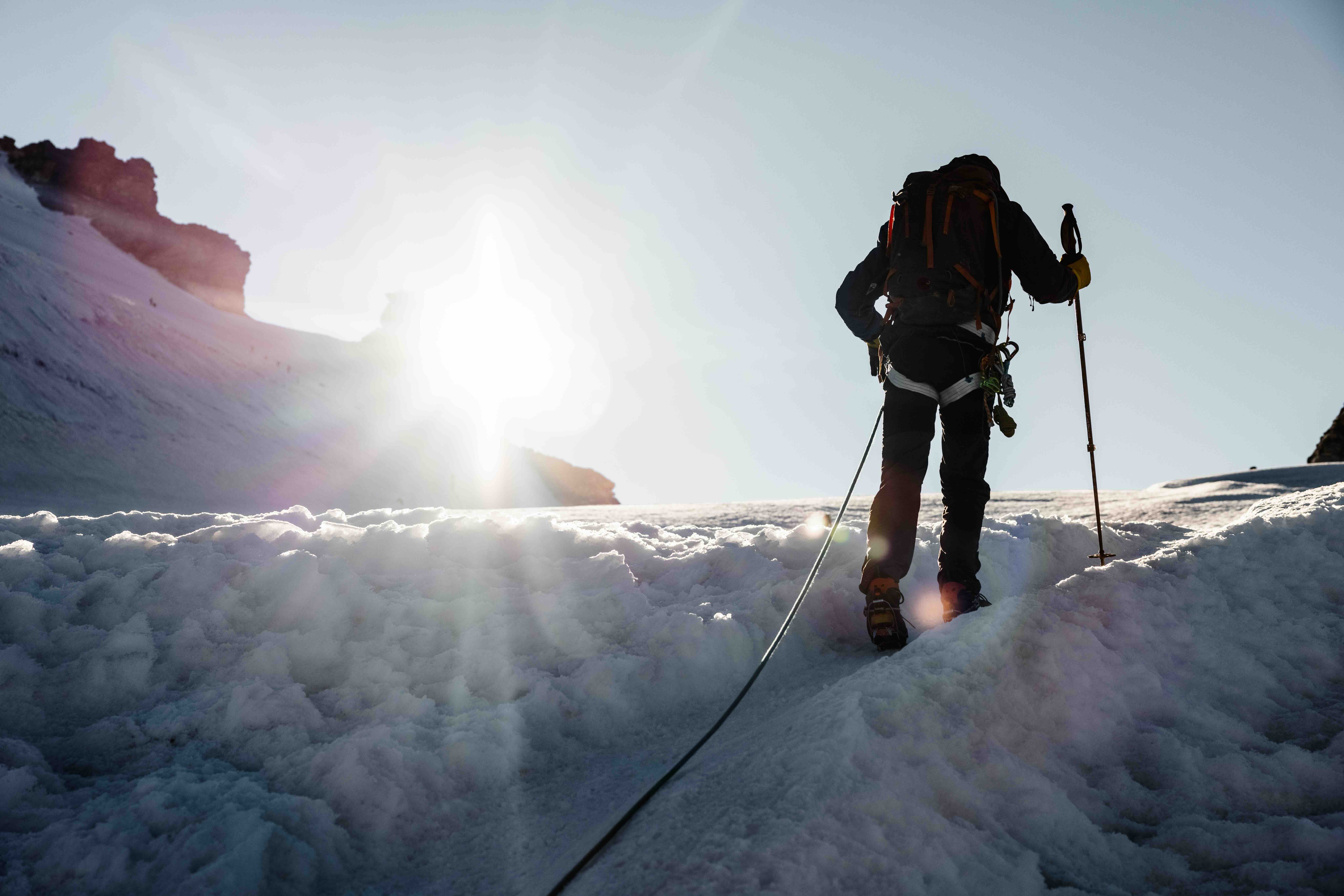 Op onze uitgebreide paklijst vind je alles wat je mee moet nemen. Je kan de paklijst verderop op deze pagina aanvragen. Een aantal materialen voorzien wij voor je: stijgijzers, klimgordel, pickel en helm. Deze hoef je dus niet mee te nemen!