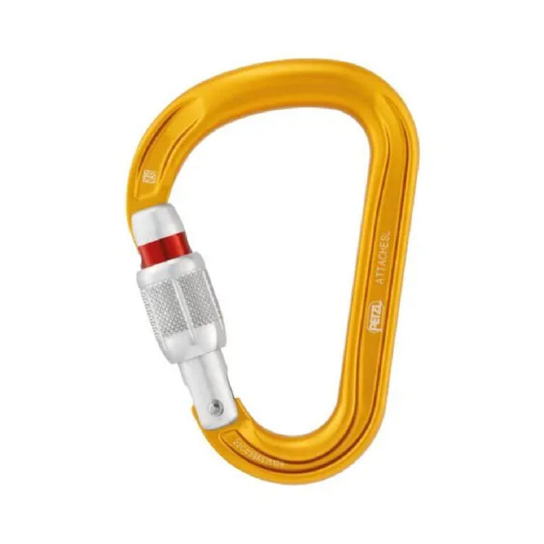 Schroefkarabiners zijn licht, simpel en betrouwbaar. Modellen met een rode markering maken zichtbaar of de karabiner nog open staat. Let er wel op dat een schroefsluiting door wrijving kan opendraaien, dus blijf controleren. Voorbeelden: Petzl Attache of Rocha.