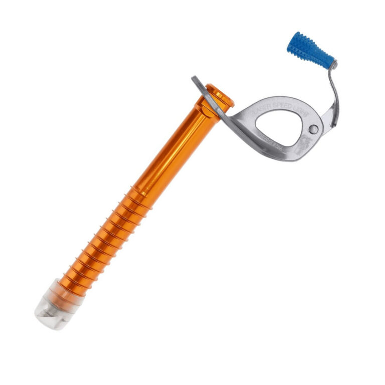 Voor eerste alpiene tochten heb je meestal een klassieke wandelpickel nodig. Niet te technisch, niet te kort, niet te agressief. Het doel is balans, steun en veiligheid op sneeuwhellingen en gletsjers. Kies een rechte pickel van plusminus 60cm. In hand gehouden moet hij ongeveer tot je enkel of net daarboven komen, afhankelijk van terrein en voorkeur. Je gebruikt de pickel om jezelf te remmen in sneeuw in het geval van uitglijden.